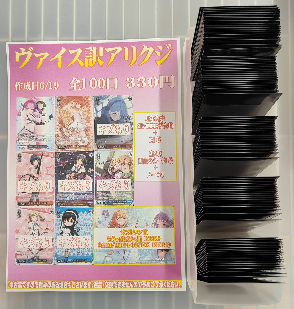 シーガル郡山店です! ヴァイス 訳アリクジ 作成しました✨ 1口330円/全100口(ラストワン賞有) よろしくお願いします‼️