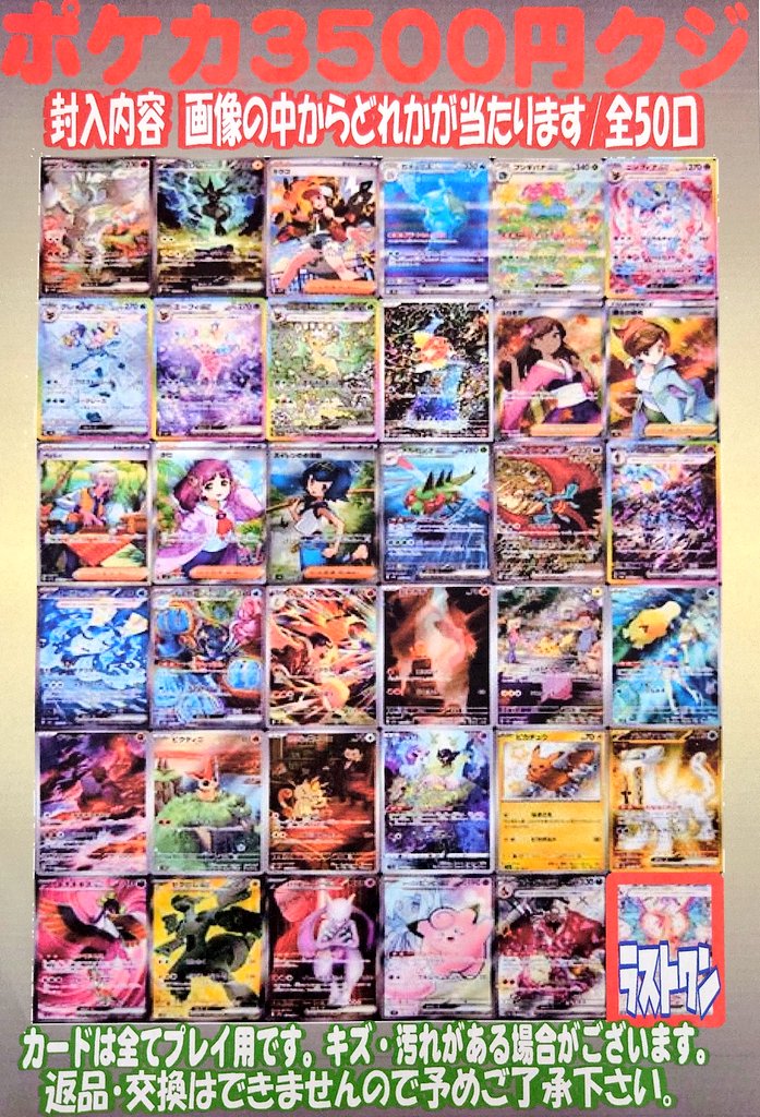 シーガル郡山店です! ✨ポケカ3500円クジ✨ こちら作成致しました! 全50口になります! 是非お試しくださいませ(ノ)*´꒳`*(ヾ)