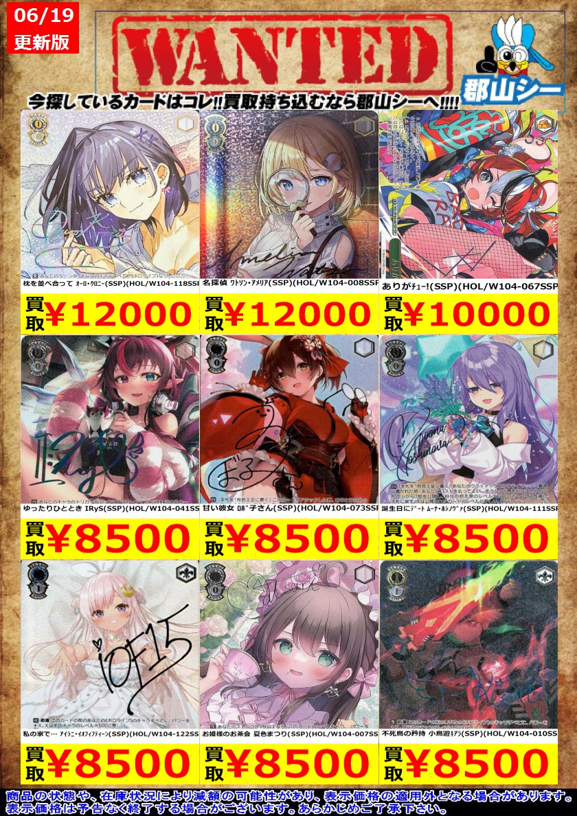 シーガル郡山店ヴァイスお買取り情報!※商品の状態や在庫状況により減額の可能性があり、表示価格の適用外になる場合がございます。予めご了承ください。 #ヴァイスシュヴァルツ #買取 #シーガル郡山店