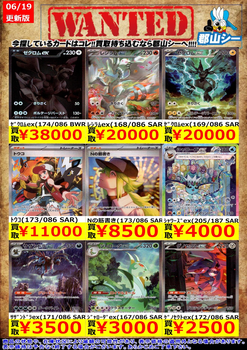 シーガル郡山店ポケカ数量限定お買取り情報更新です!よろしくお願いいたします! ※商品の状態や在庫状況により減額の可能性があり、表示価格の適用外となる場合がございます。 シビシラス(じっとする) ¥30 ゼクロムex(037/086 RR) ¥150 ゲノセクトex(069/086 RR) ¥150