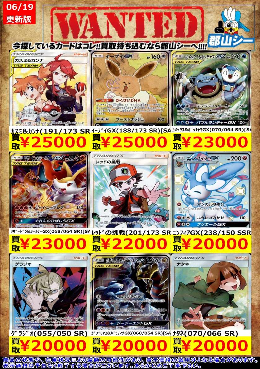 シーガル郡山店ポケカ数量限定お買取り情報更新です!よろしくお願いいたします! ※商品の状態や在庫状況により減額の可能性があり、表示価格の適用外となる場合がございます。 トウコ(166/086 SR) ¥2,700 サンダースex(209/187 SAR) ¥3,800 シャワーズex(205/187 SAR) ¥4,300