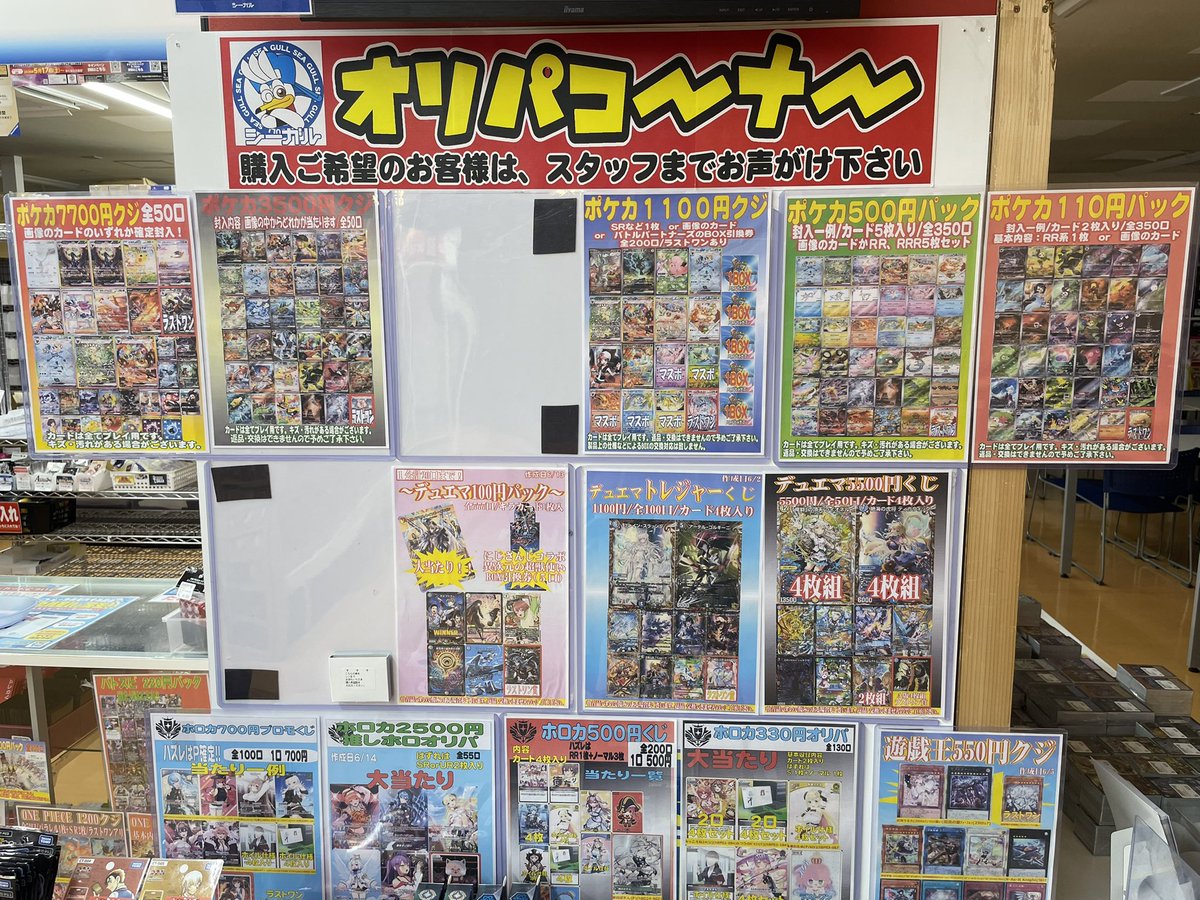 おはようございます(*^^*) シーガル郡山店です。 ただいま展開中のオリパ各種になります。 ご来店お待ちしております(*^^*)