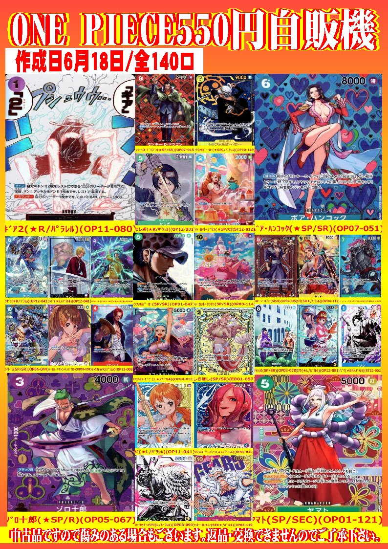 シーガル郡山店です。 ワンピ550円自販機追加致しました‼️ ぜひ、よろしくお願いします。