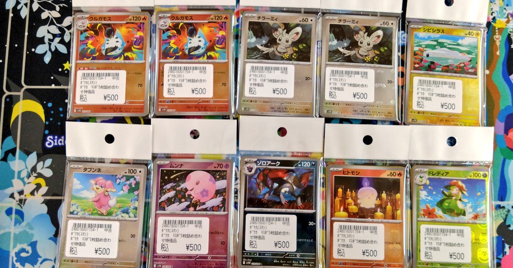 シーガル郡山店です! ポケモンカードマスボ5枚詰め合わせ特価品作成いたしました!!! ブロックくじの横に置いております、よろしくお願い致します😊