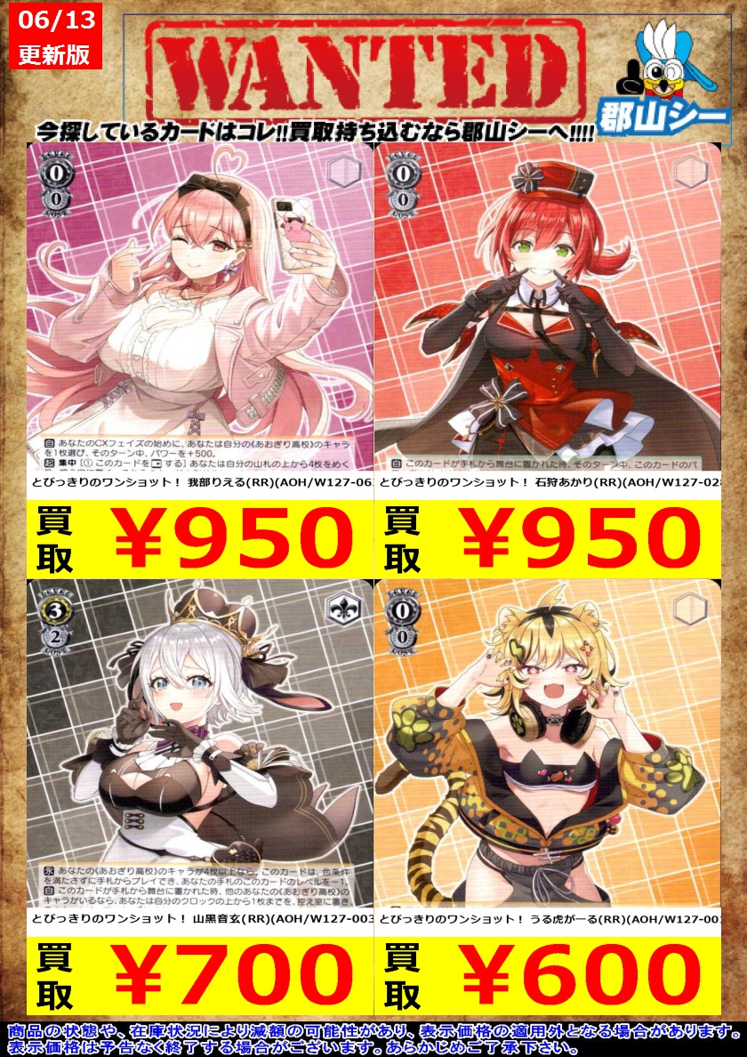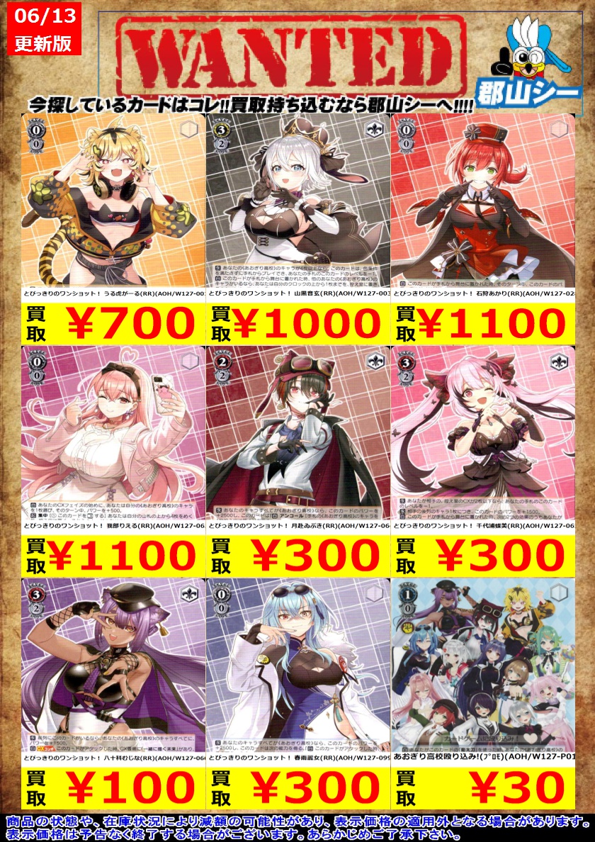 シーガル郡山店です。 WS新弾『あおぎり高校』の特価商品追加致しました‼️ ぜひ、よろしくお願いします。