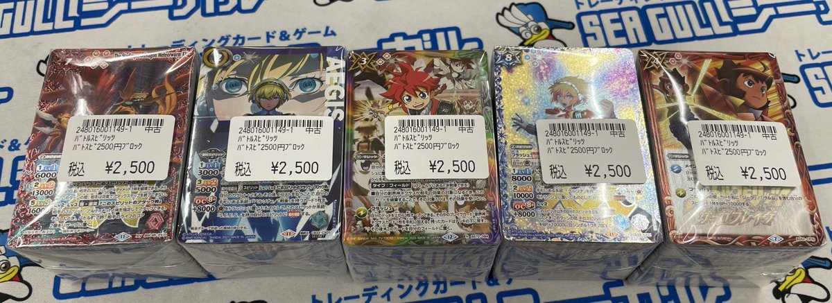 こんばんは\(^▽^)/! シーガル郡山店です。 バトスピ 2500円ブロックを作成致しました。 中身はいつものブロックよりちょっとだけ豪華な仕様となっております。 ショーケースにて展開中です。 ご来店お待ちしております(*^^*)