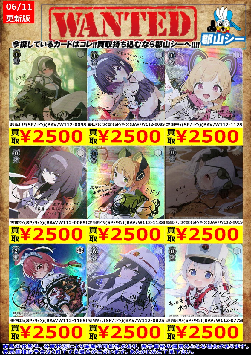 シーガル郡山店ヴァイスお買取り情報!※商品の状態や在庫状況により減額の可能性があり、表示価格の適用外になる場合がございます。予めご了承ください。 和楽チセ(水着)(SP/サイン)(BAV/W112-042SP) ¥2,500 #ヴァイスシュヴァルツ #買取 #シーガル郡山店