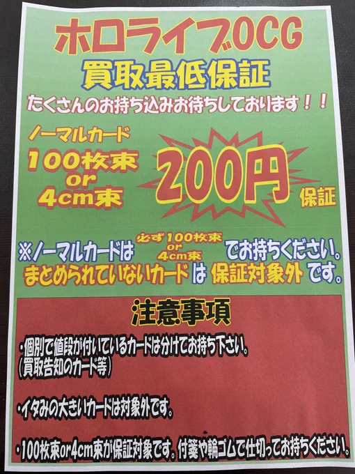 こんばんは‼️ シーガル郡山店です。 ホロカ ノーマルカードお買取保証を少々変更致しました。 100枚束or4cm束でもお買取保証となります。 ぜひお持ち込みくださいm(_ _)m ご来店お待ちしております(*^^*)