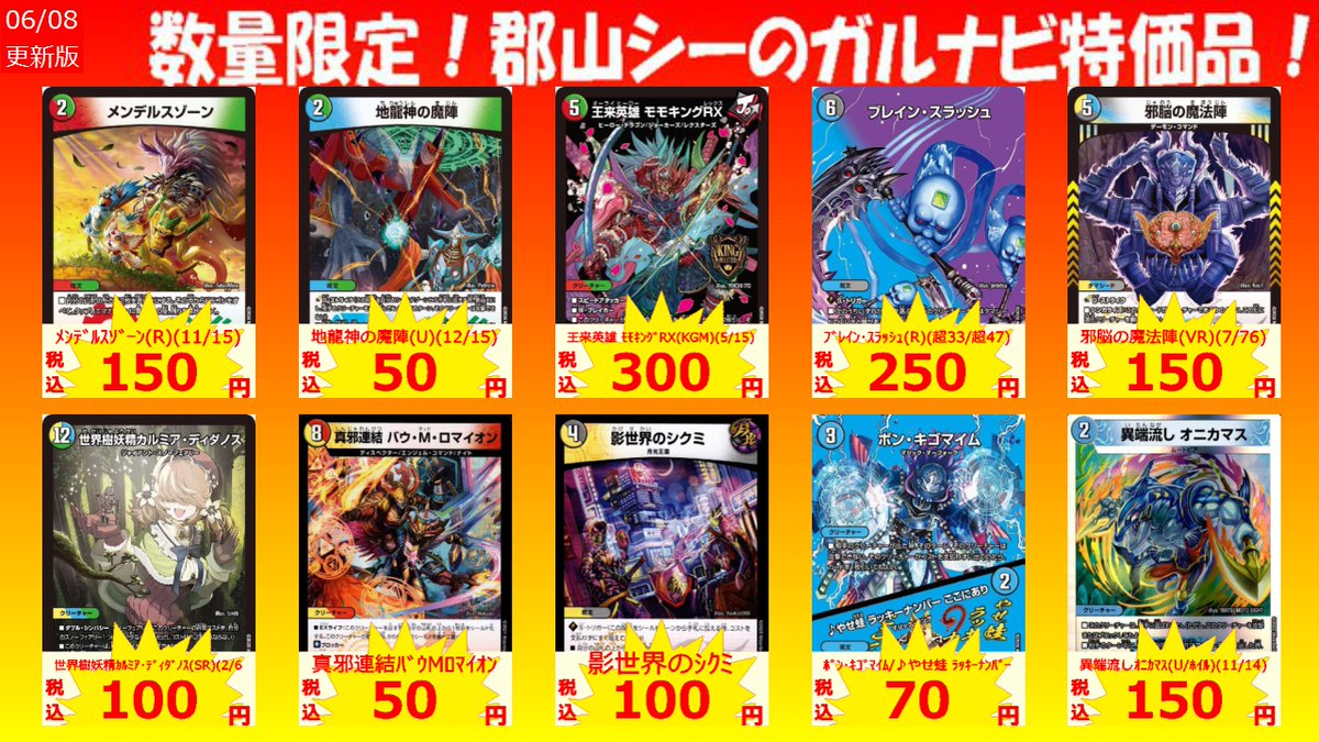 数量限定!郡山シー限定ガルナビ特価品 暴発秘宝ベンゾ/星龍の暴発 ¥100 ハンプティ・ルピア ¥150 ルピア&ガ:ナテハ ¥70 #デュエマ #シーガル郡山 #アツアツ特価