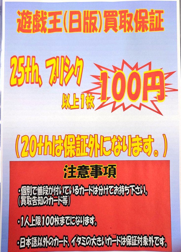 シーガル郡山店です! ✨遊戯王25th、プリシク最低保証✨ こちら始めました! よろしくお願いします(っ´ω`c) ※キズあり、20thは対象外となります ※1日上限100枚までとなっております