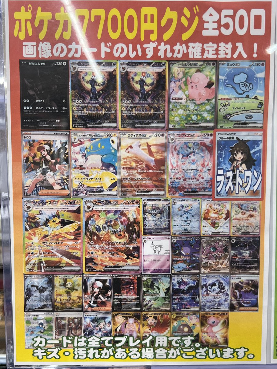 🌈ポケカ7,700円くじ🌈 全50口で販売開始‼️ 最新弾からゼクロム、トウコ等入ってます✨️ 是非ぜひお試しください(*´ω`*)