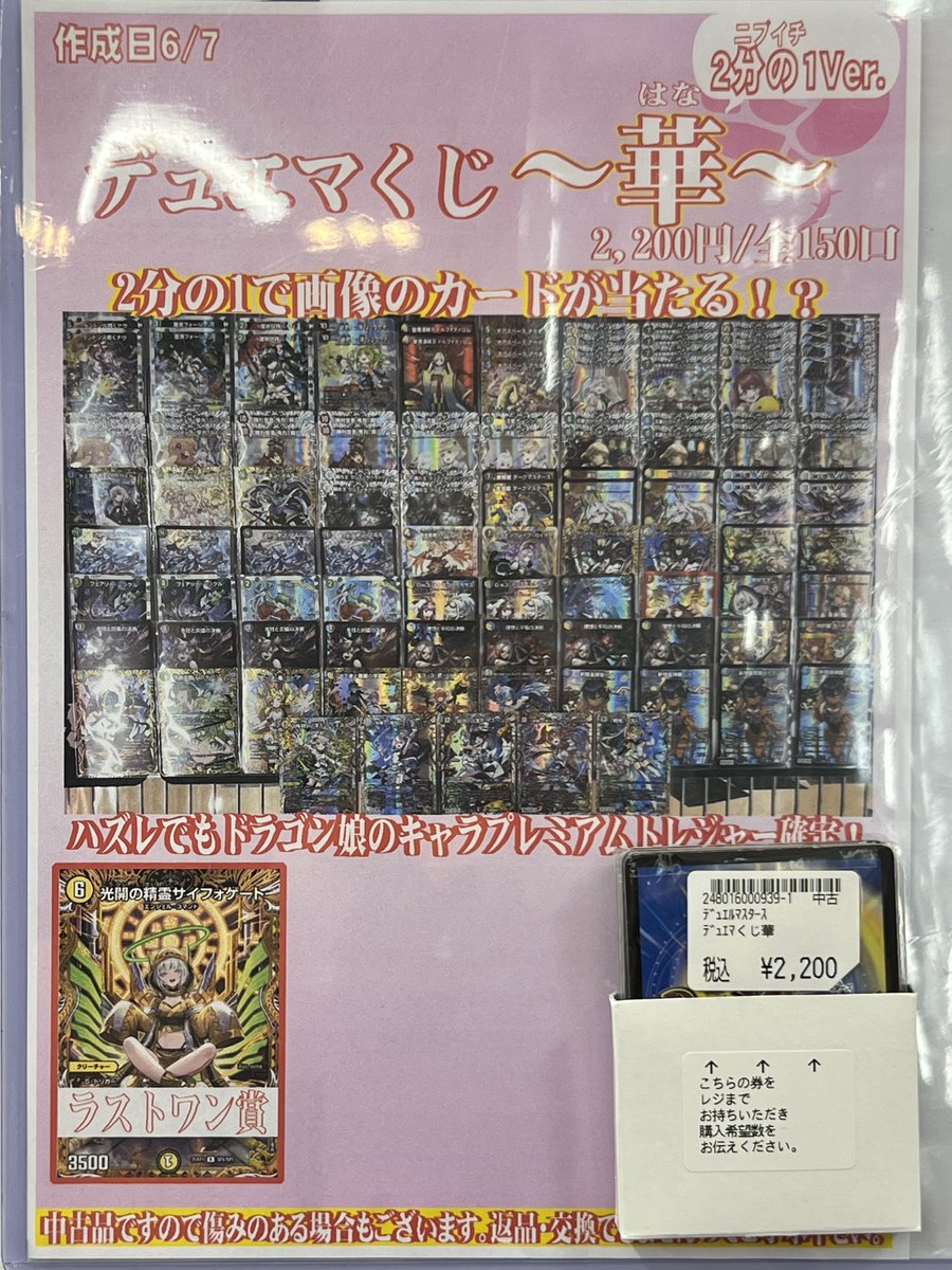 🌸デュエマくじ 華🌸 2,200円 全150口 好評につき再度ニブイチVer.で販売開始✨️ 今回はゼニスアイドル全員入ってます♡ 是非ぜひお試しください(*´ω`*)