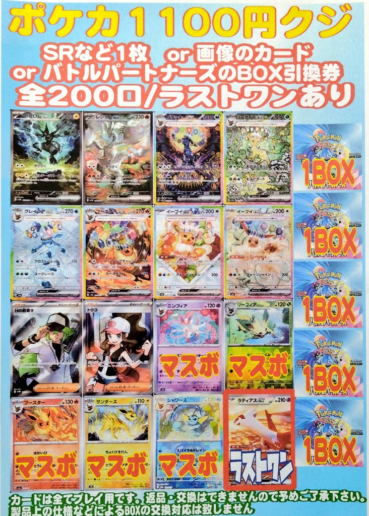ポケモンカード1100円くじ作成いたしました!!! 運が良ければバトルパートナーズのBOXゲット! よろしくお願い致します😊🙏✨