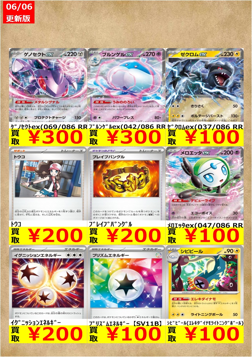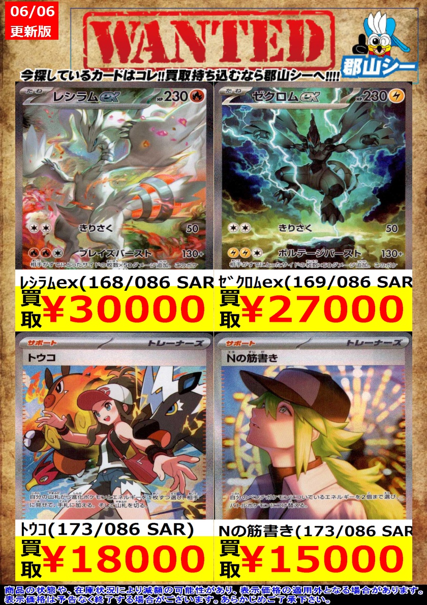 シーガル郡山店ポケカ数量限定お買取り情報更新です!よろしくお願いいたします! ※商品の状態や在庫状況により減額の可能性があり、表示価格の適用外となる場合がございます。 バッフロンex(172/086 SAR) ¥1,000 Nの筋書き(165/086 SR) ¥2,000 ドリュウズex(171/086 SAR) ¥2,000