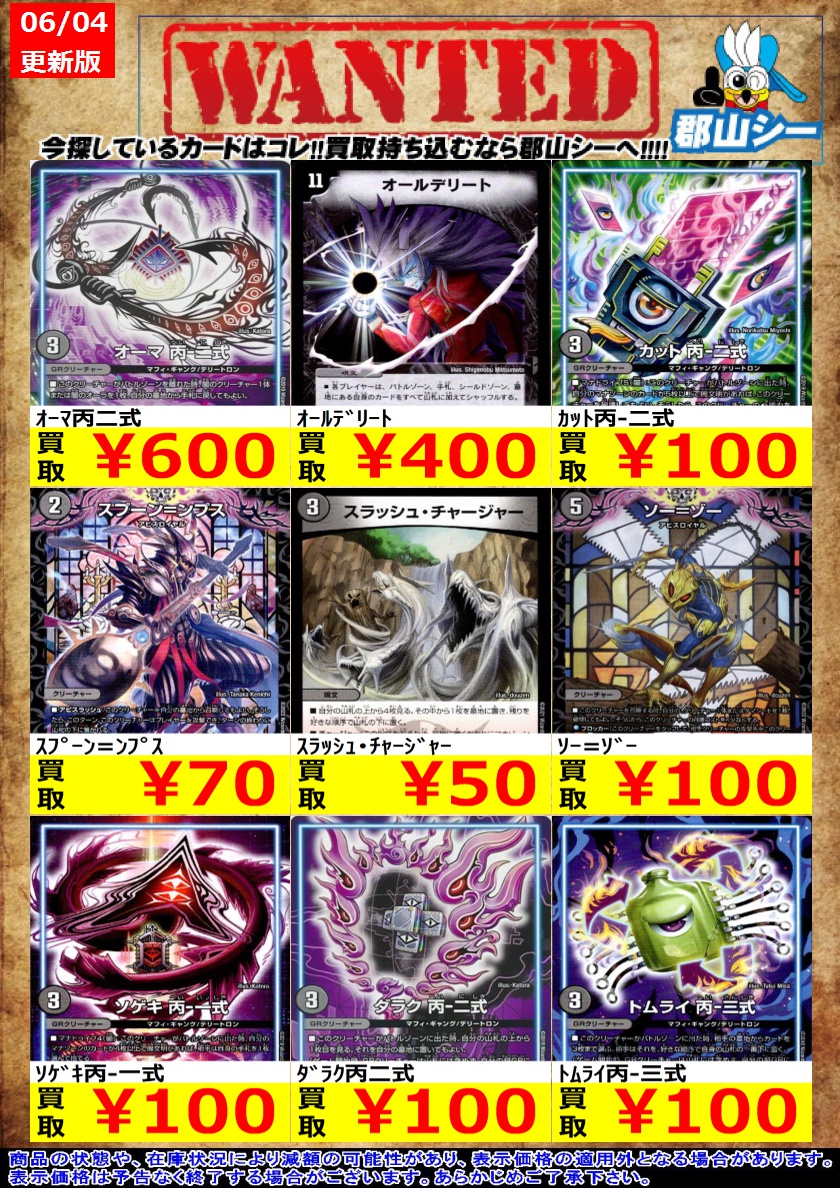 シーガル郡山店デュエマノーマルお買取り情報!! ※商品の状態や在庫状況により減額の可能性があり、表示価格の適用外となる場合がございます。 堕呪ウキドゥ ¥70 堕呪ギャプドゥ ¥70 堕呪ゴンパドゥ ¥100
