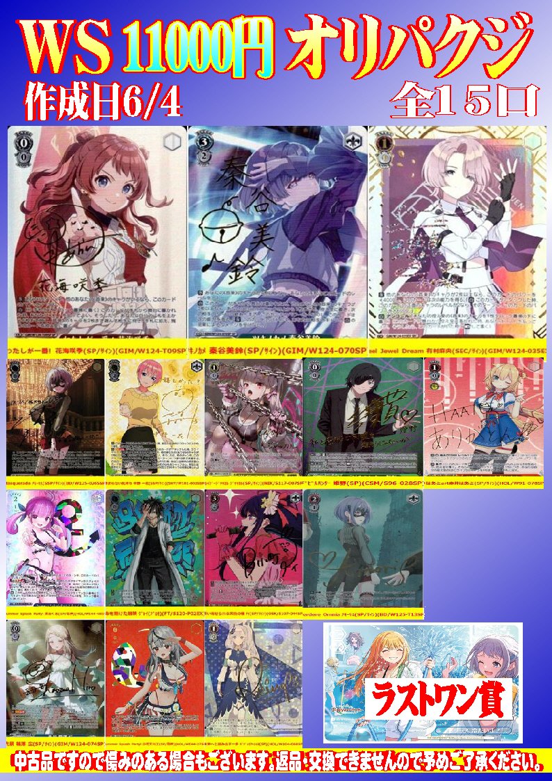 シーガル郡山店です。 WS11000円オリパ作成致しました‼️ 全15口でラストワンが画像二枚目のものになります‼️ ぜひ、よろしくお願いします。