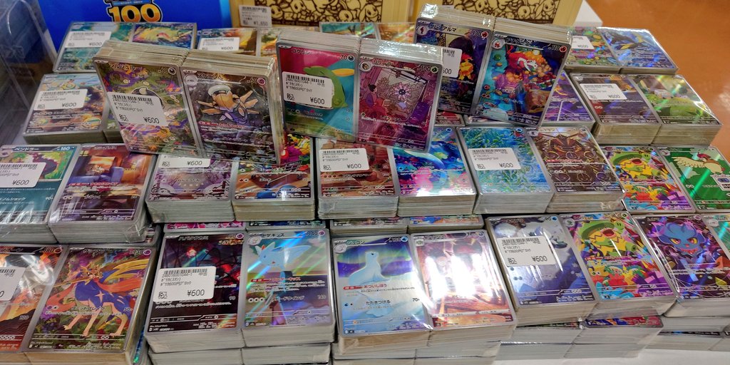 シーガル郡山店です! レジ前にて ポケモンカード 各種ブロック販売しております! 600円ブロック は AR系のカードが表裏に4枚の キラッキラ✨仕様です! お好きなポケモンゲットしませんか?ご来店お待ちしております😊