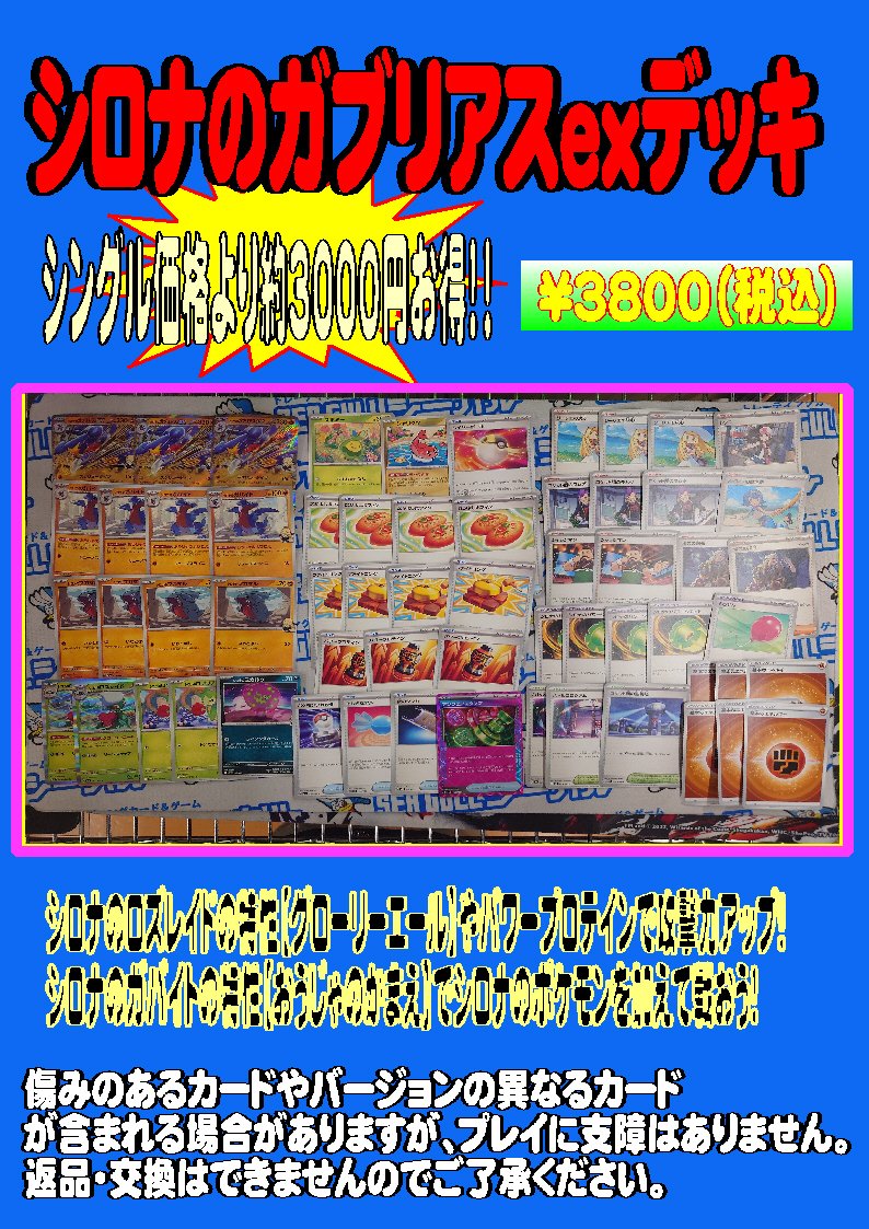 シーガル郡山店です! 構築済みデッキ販売 シロナのガブリアスex デッキ を作成いたしました! シングルで揃えるよりも約3000円お得! よろしくお願い致します🙏 #シーガル郡山店デッキ販売