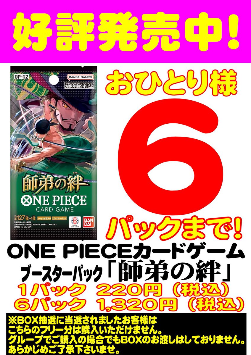 #ワンピースカード 最新弾 ブースターパック『師弟の絆』 在庫ございます❗️ お一人様6パックまでの販売とさせていただきます ※グループでご購入の場合でもBOXでのお渡しはできかねます。あらかじめご了承くださいませ。 皆様のご来店をお待ちしております😊