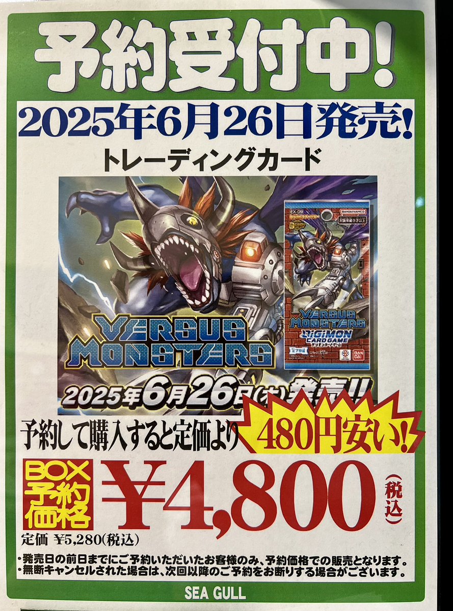 【ご予約受付中】 #デジモンカードゲーム 6/26 発売 ✅エクストラブースター VERSUS MONSTERS【EX-09】 ただいま予約受付中です❗️ ご予約お待ちしております😊 #シーガル郡山店予約