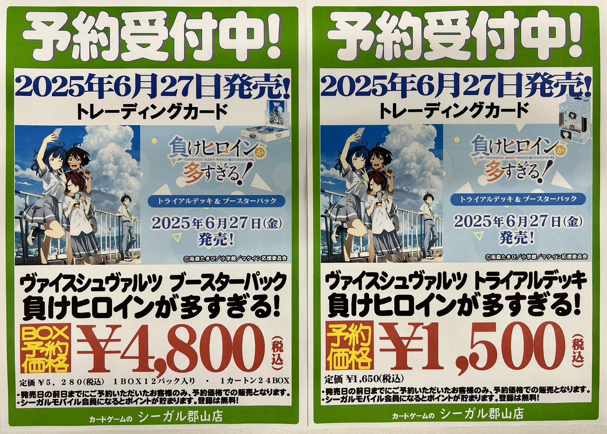 【ご予約受付中】 6/27 発売 #ヴァイスシュヴァルツ トライアルデッキ ブースターパック 『負けヒロインが多すぎる!』 ただいま予約受付中です❗️ ご予約お待ちしております😊 #シーガル郡山店予約