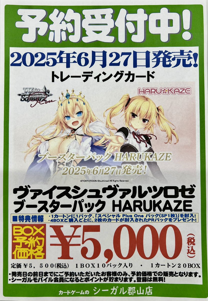 【ご予約受付中】 6/27 発売 #ヴァイスシュヴァルツロゼ 『HARUKAZE』 ブースターパック ただいま予約受付中です❗️ ご予約お待ちしております😊 #シーガル郡山店予約