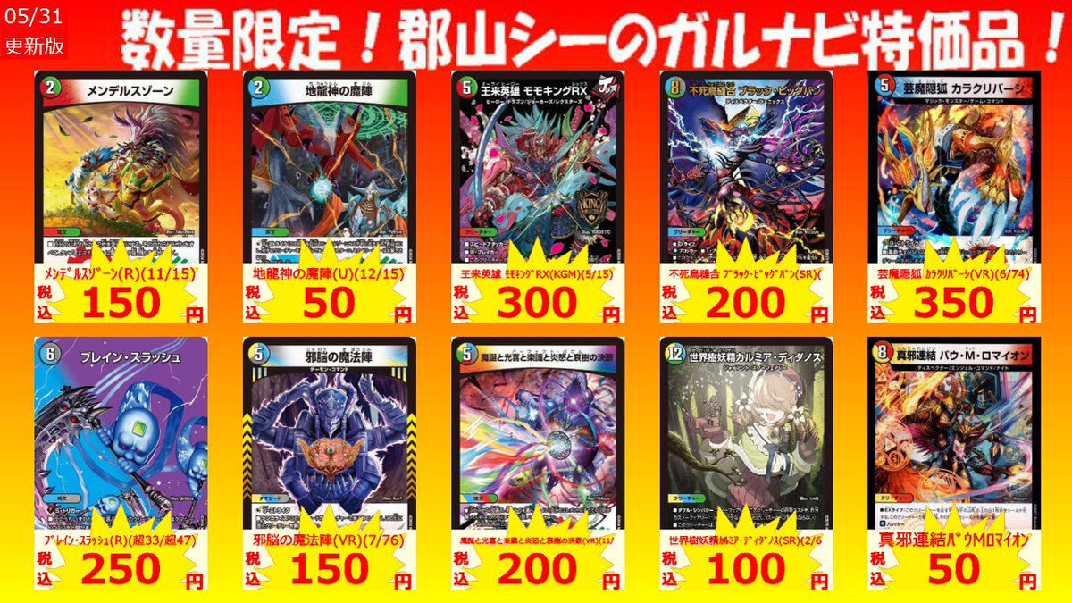 数量限定!郡山シー限定ガルナビ特価品 ハンプティ・ルピア ¥150 ピザスターのアンティハムト ¥150 [にじさんじ]ブレイン・スラッシュ(R)(54/100) ¥200 #デュエマ #シーガル郡山 #アツアツ特価