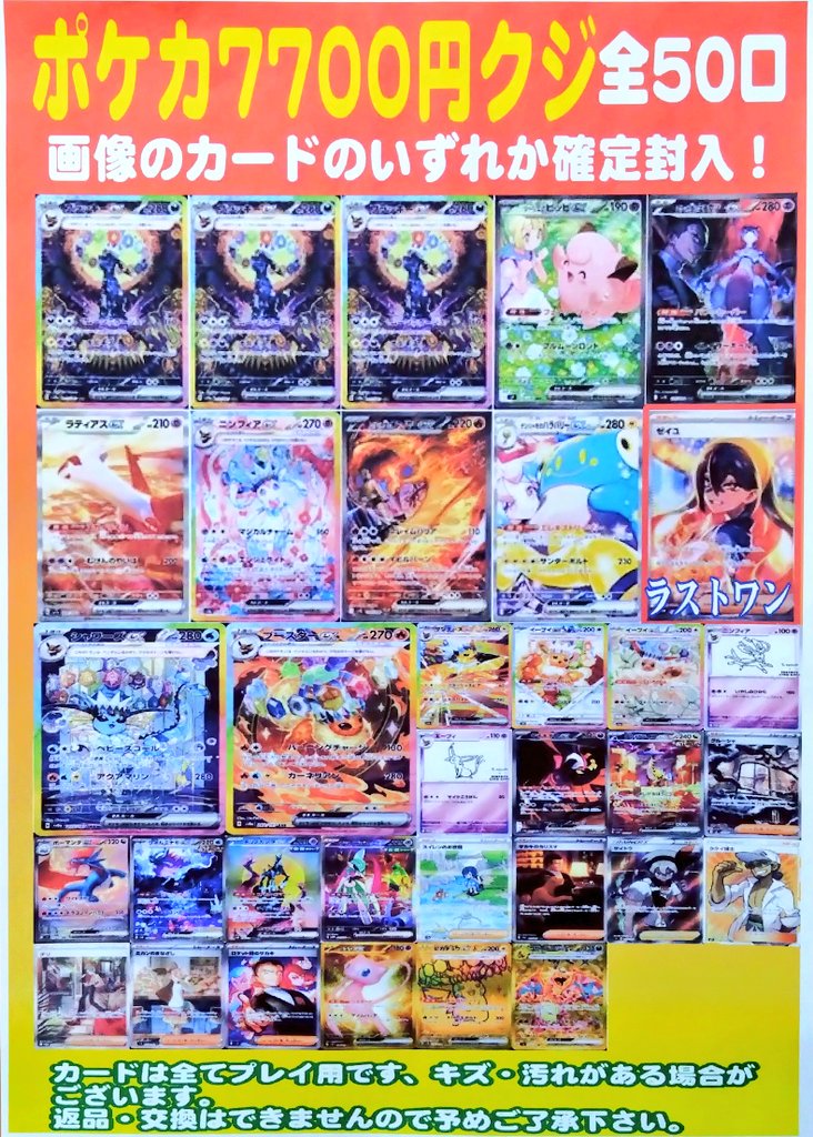 シーガル郡山店です! ポケモンカード7700円くじ作成いたしました!!! よろしくお願い致します😊😊😊