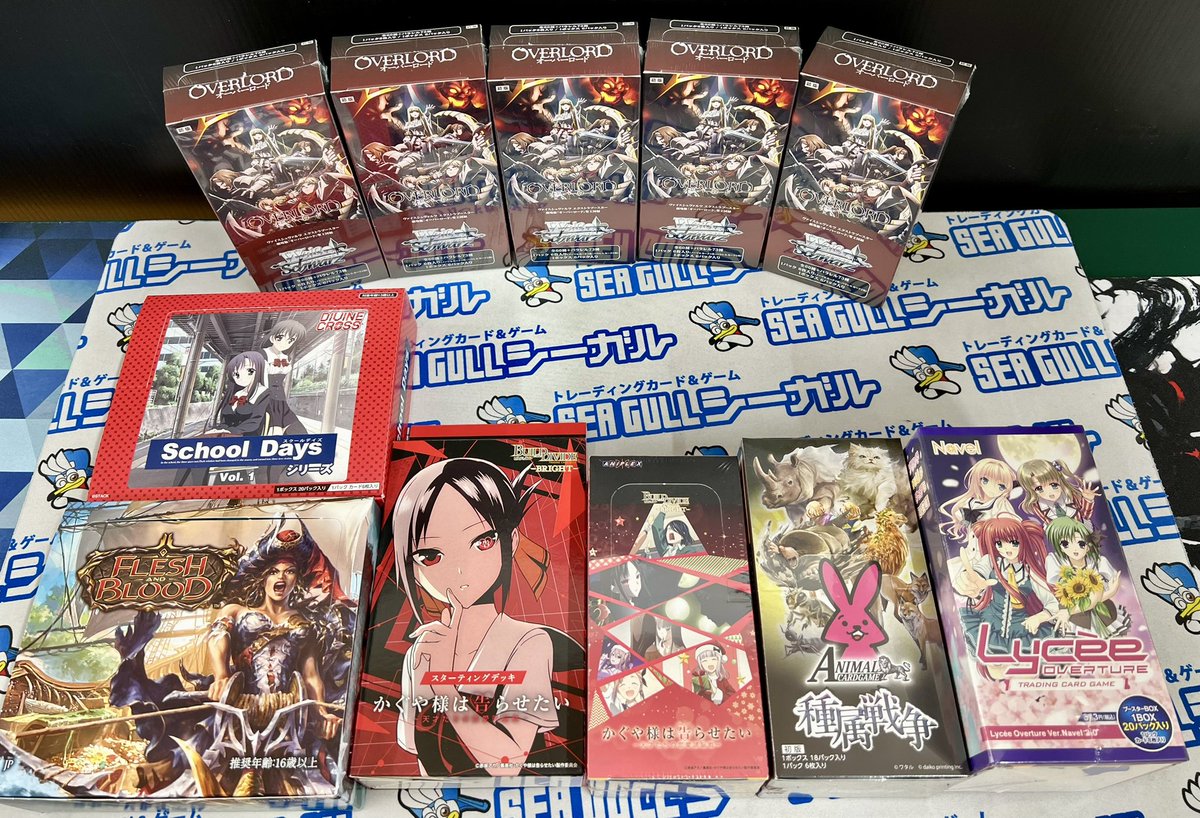 本日発売🎉 ヴァイスシュヴァルツ ✅エクストラブースター 劇場版「オーバーロード」聖王国編 ビルディバイド ブライト ✅アニメ かぐや様は告らせたい スターティングデッキ ブースターパック ✅フレッシュ&ブラッド 蒼海の秘宝High Seas その他各種在庫ございます ご来店お待ちしております😊