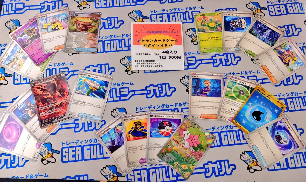 シーガル郡山店です! ポケモンカードゲーム 本日イベントのお知らせ⋆͛📢⋆ ジムバトル 午前・午後予定しております😊 ポケモンカード ログインオリパ 本日 画像の5口 追加しました✨ みなさまのご来店お待ちしております✨