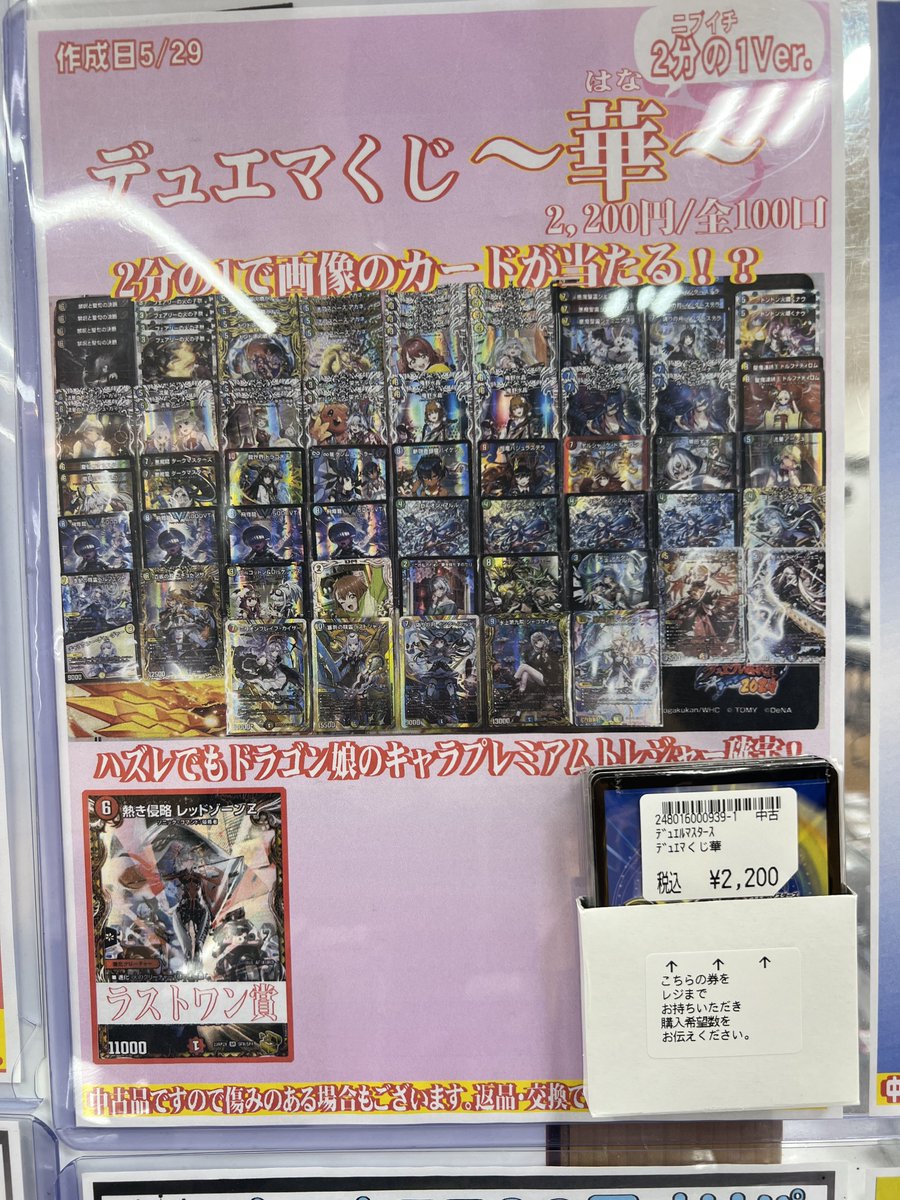 🌸デュエマくじ 華🌸 2,200円 全100口 販売開始です‼️ 今回は2分の1で当たりが出る激アツ仕様🔥 ハズれてもドラゴン娘確定♡ 是非ぜひお試しくださいッ(*´ω`*)