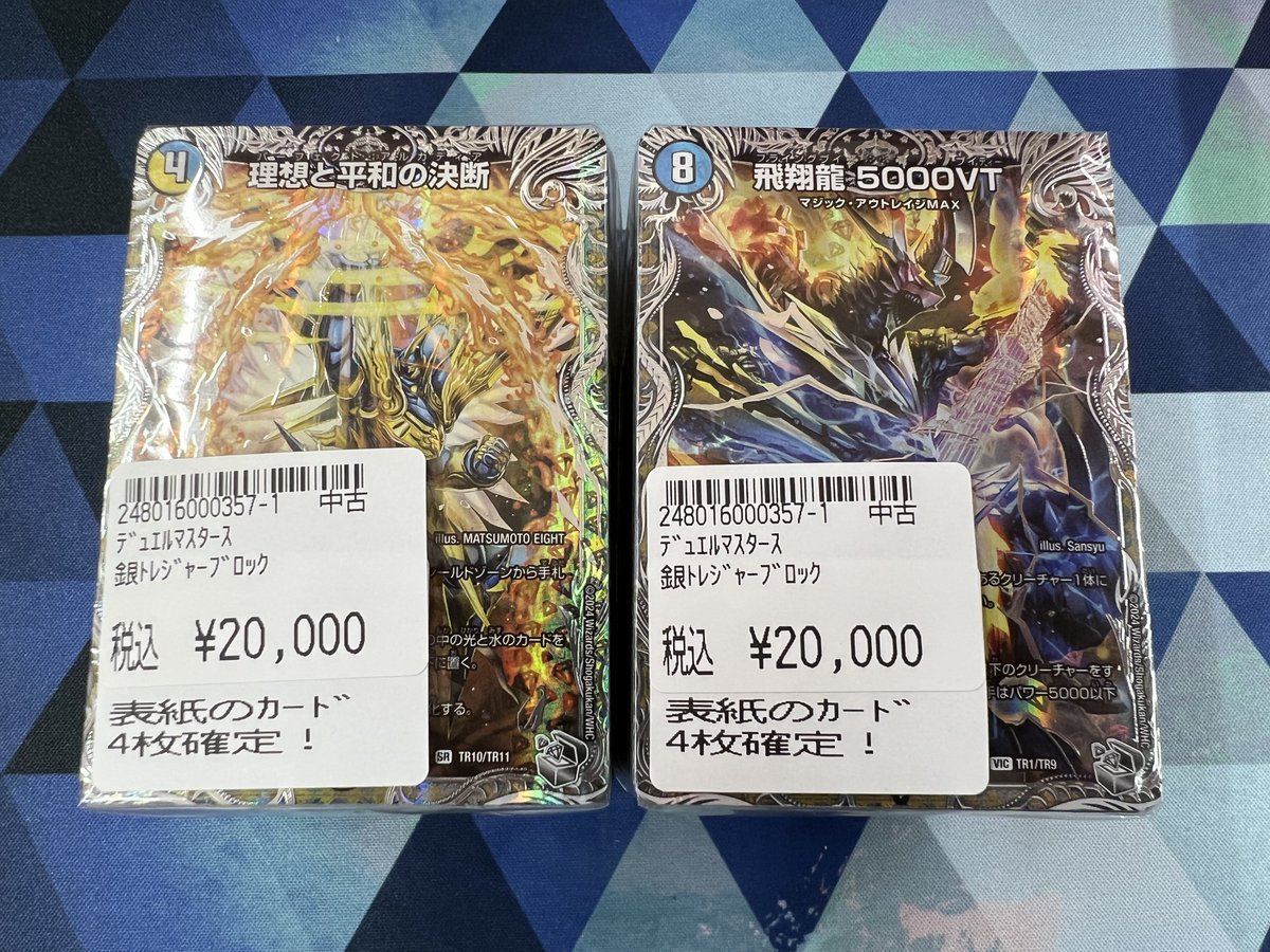 ✨️デュエマ銀トレジャーブロック✨️ 限定2個作成致しました‼️ 表紙のカード4枚確定🌈 中身はALL銀トレジャー!!! ちょいと豪遊してみませんか😁 ショーケース内デッキ販売コーナー横にて販売中!