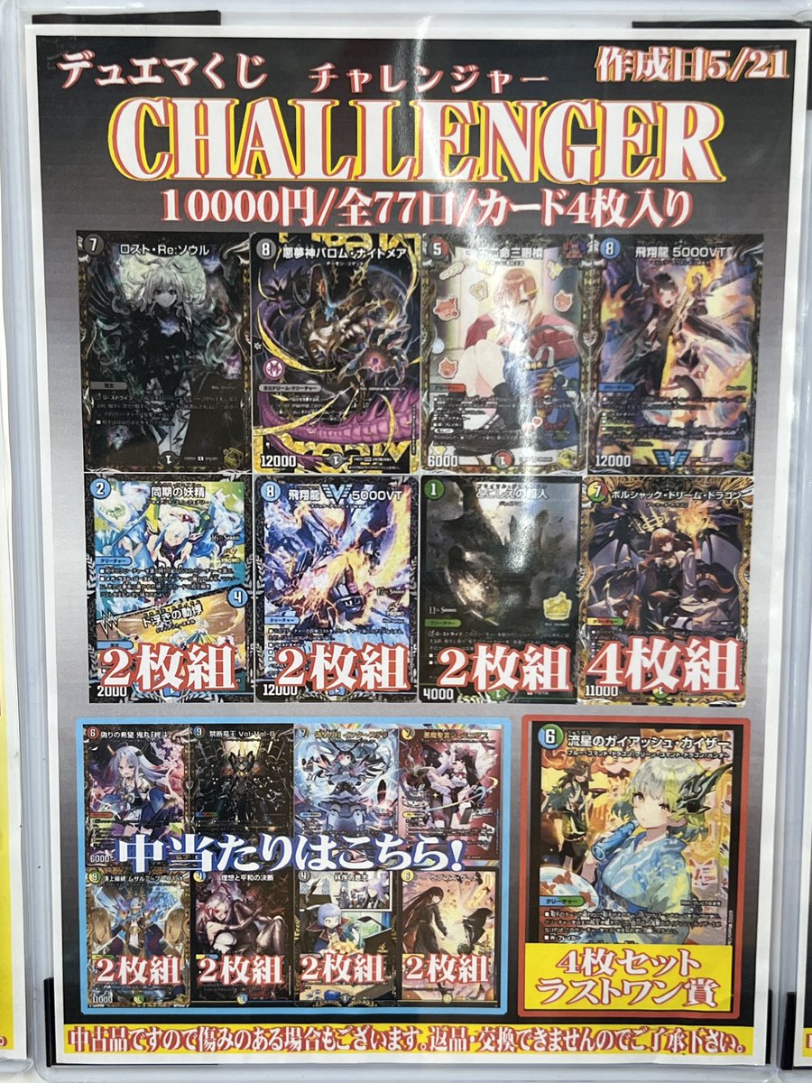 デュエマくじCHALLENGER 残り32口です‼️ 超豪華ラインナップのクジとなっております🔥 是非ぜひ挑戦してみてください…!!!