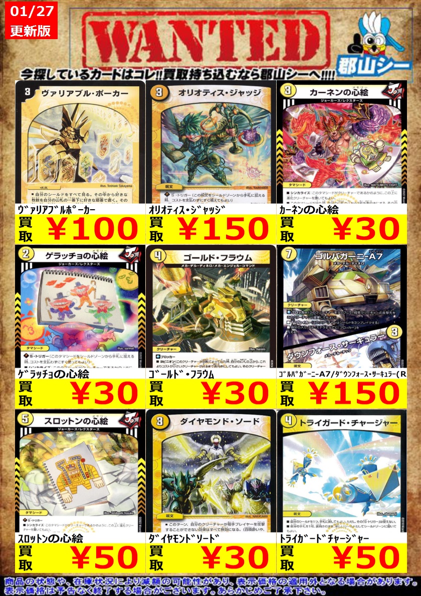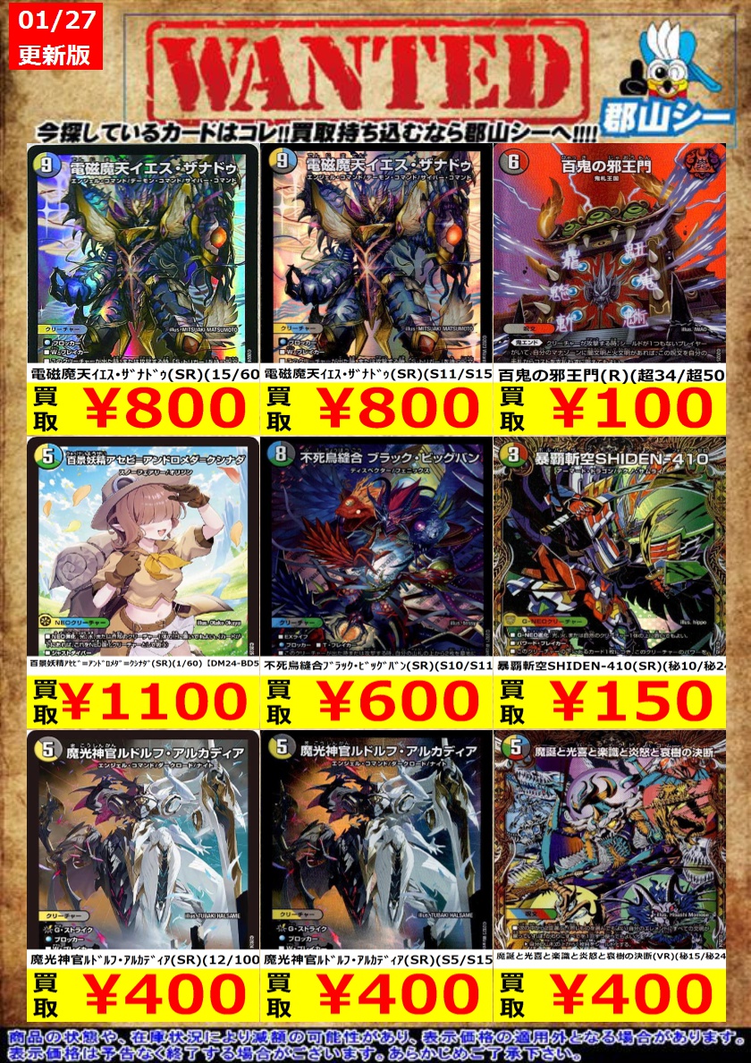 シーガル郡山店デュエマノーマルお買取り情報!! ※商品の状態や在庫状況により減額の可能性があり、表示価格の適用外となる場合がございます。 アシスター・Mogi林檎 ¥30 戦攻のシダン アカダシ/「いいダシがとれそうだ」 ¥30 堕呪バレッドゥ ¥50