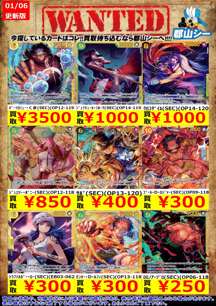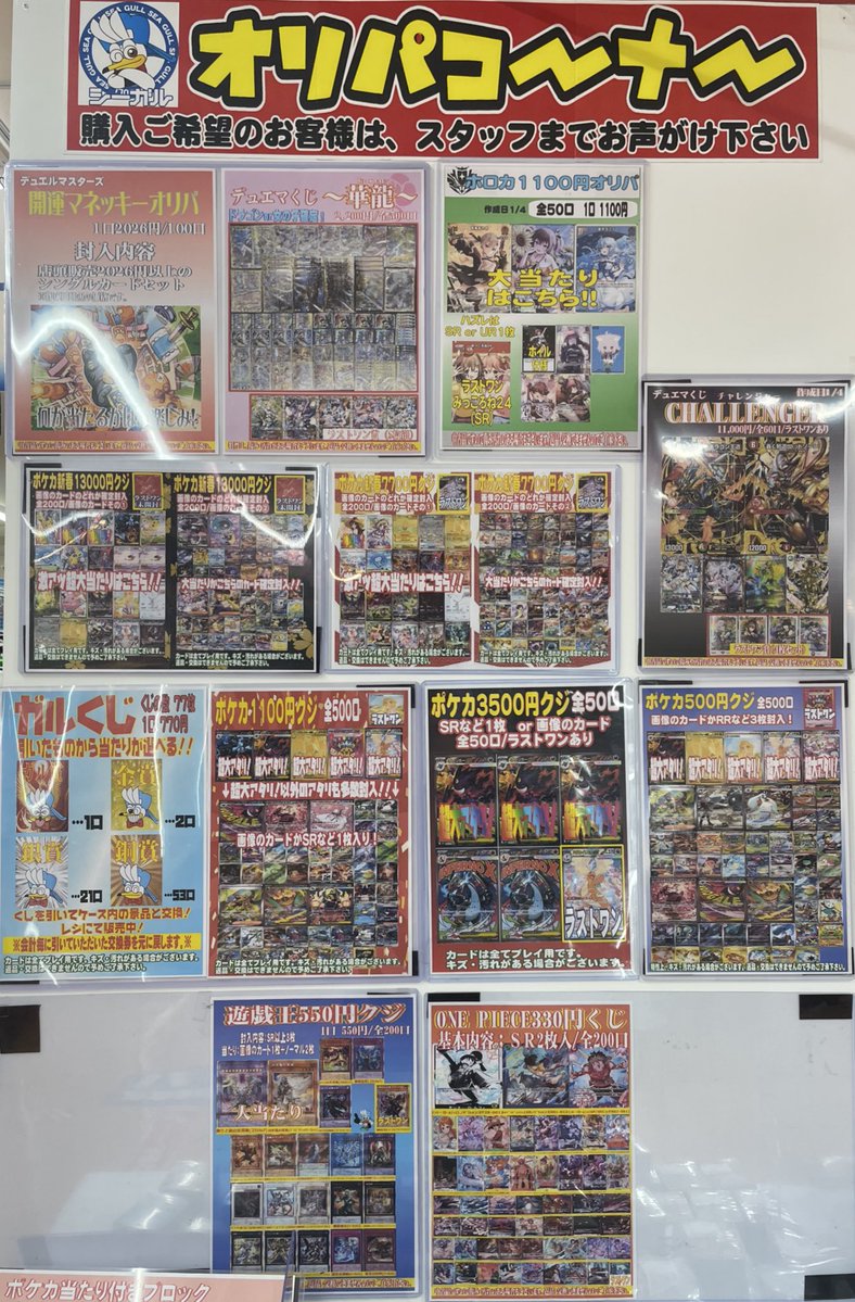現在シーガル郡山店で展開中のくじオリパはこちらです❗️ ぜひお試しください(*´∀`*)