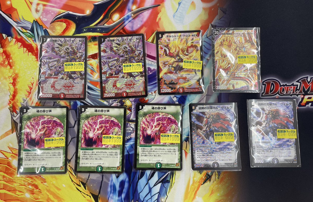 シーガル郡山店デュエマお買取り情報!! ※商品の状態や在庫状況により減額の可能性があり、表示価格の適用外となる場合がございます。 邪龍 ジャジーブラッド(SR)(S10/S11) ¥1,300 真気楼と誠偽感の決断(SR)(S7/S11) ¥4,500 凰翔竜機マーチ・ルピア(VR)(31/89) ¥200