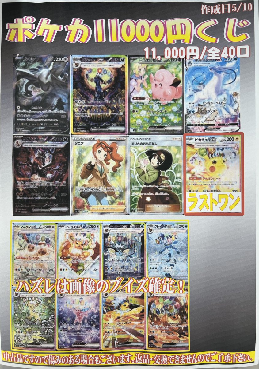 🌈ポケカ11,000円くじ🌈 全40口で販売開始‼️ ルギアSAやブラッキーsxSAR等当たります🎯✨️ はずれてもブイズSAR確定♡ 是非ぜひお試しください(*´ω`*)