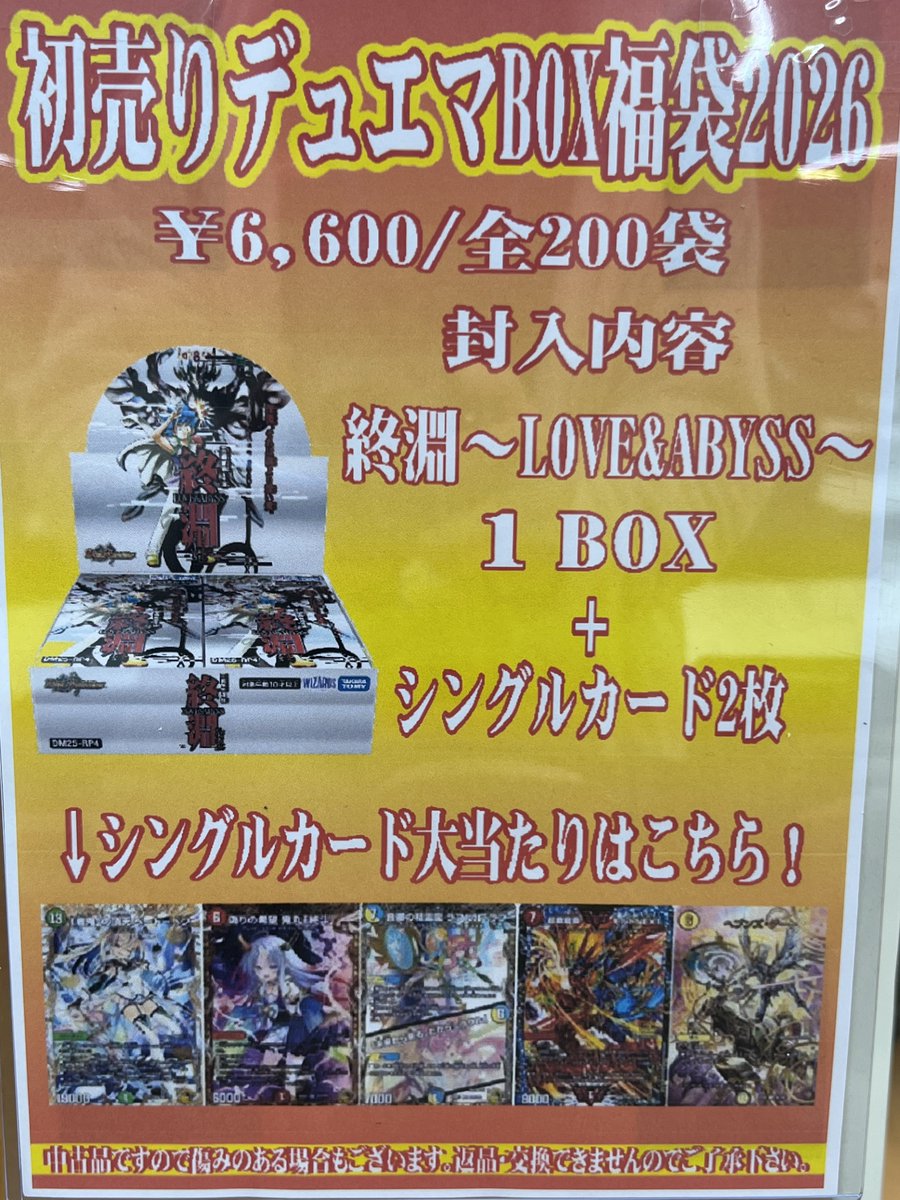 おはようございます☀️ 初売りセール福袋の展開は本日までとなります‼️ デュエマ福袋が残り29袋! まだ大当たりが残っているかも…⁉️ 是非ぜひご利用ください(*´ω`*)