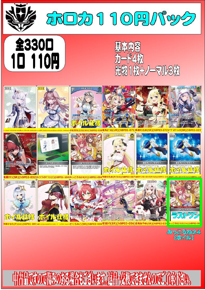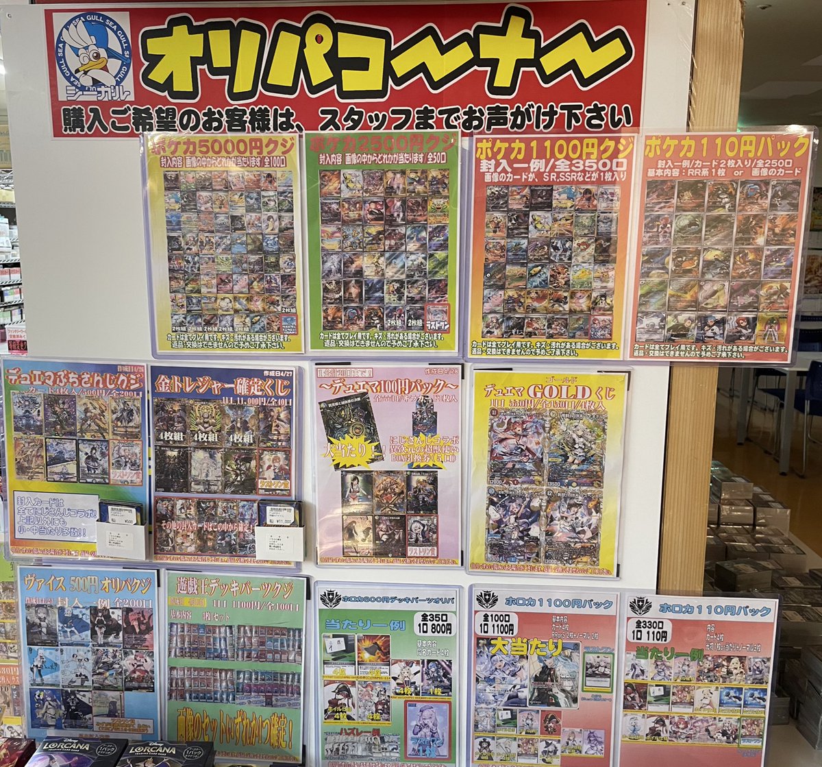 おはようございます(*^^*) シーガル郡山店です。 ただいま展開中のオリパ各種になります。 ご来店お待ちしております(*´˘`*)