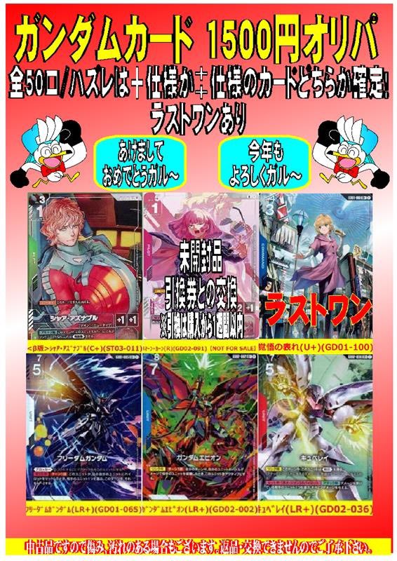 🌅シーガル郡山店初売り告知‼️🌅 【ガンダムカード】 🎍ガンダムカード1500円オリパ🎍 全50口 🎍ガンダムカードゲーム 福袋🎍 1口 12,000円 全10口 #ガンダムカード #シーガル郡山