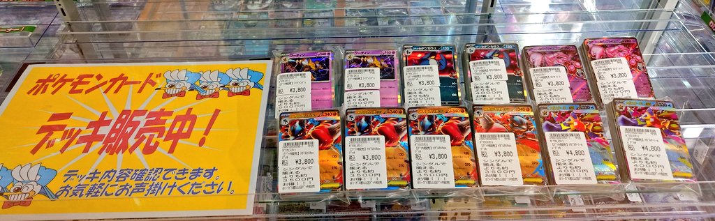 シーガル郡山店です! ポケモンカード ショーケースにて 構築済みデッキを 販売しております😊 画像は現在販売中のデッキです! デッキリストは #シーガル郡山店デッキ販売 や店頭にて確認いただけます! お店のイベントやお友達とポケカ対戦してみませんか? ご来店お待ちしております\( ᐛ )/