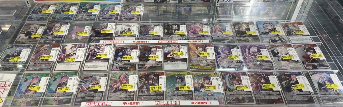 シーガル郡山店ホロライブOCGお買取り情報!! ※商品の状態や在庫状況により減額の可能性があり、表示価格の適用外となる場合がございます。 紫エール(SY)(hY05-008)(ロボ子さん) ¥600 黄エール(SY)(hY06-007)(夏色まつり) ¥1,000 緑エール(SY)(hY02-008)(儒烏風亭らでん) ¥1,500