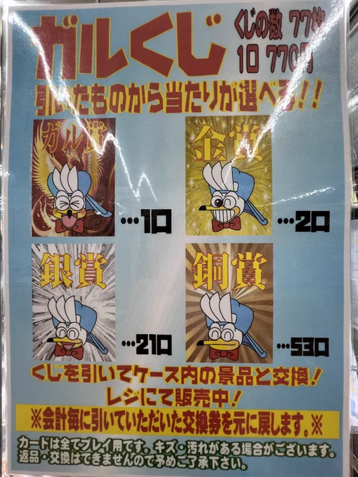 大人気!《ガルくじ》🌊 本日も回ってます✨️ 当たった等級から好きなカードが選べちゃう😍 現在はポケカとデュエマを展開中‼️ 是非ぜひお試しください(*´ω`*)