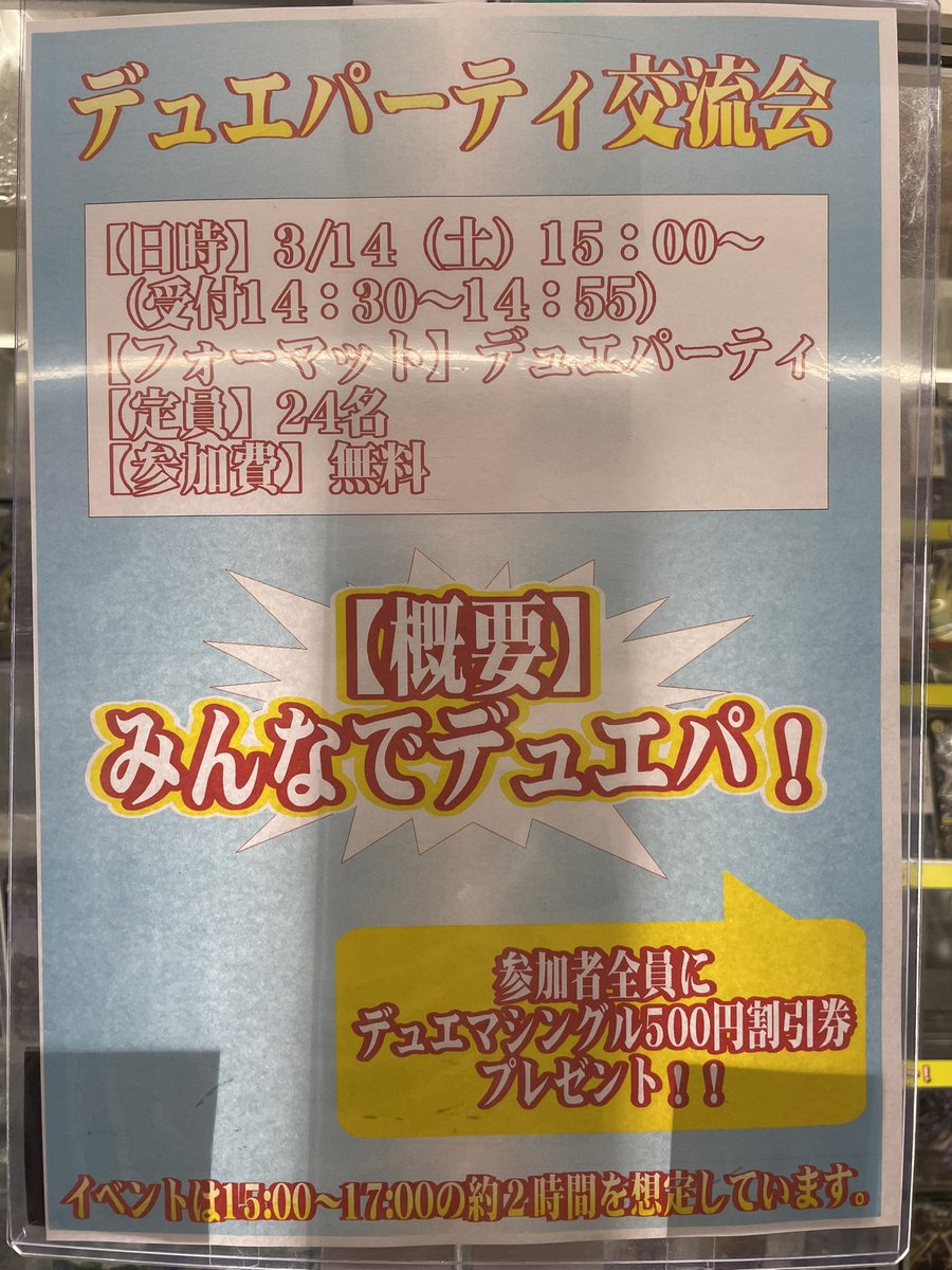 本日デュエパ交流会開催です❗️ たくさんのご参加お待ちしております🙇♂️