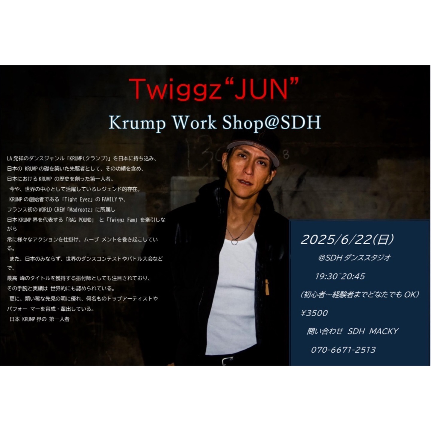 WORKSHOPのお知らせ⋆͛⋆ Twiggz 『Jun』 ◉ 6月22日 (日) ◉ 19:30~20:45 ◉ ¥3500 日本 KRUMP界の第一人者 LDH JAPAN 「RAG POUND」所属 ダンスプロリーグ “D.LEAGUE”公式チーム「FULLCAST RAISERZ」 初代ディレクター/エグゼクティブプロデューサー 就任 L 3シーズン連続 CHAMPIONSHIP 出場 こんなすごい経歴を持つ 日本のkrump界のlegend Twiggz JUNによる スペシャルワークショップが決まりました! さらに今年のSDH発表会『LEGEND』のゲストとして出演も決定️ 問い合わせ申し込みはMACKYまで #福島県 #郡山市 #郡山駅 #郡山駅前 #アティ郡山 #Ati郡山 #Ati郡山5階 #ダンス #ダンススタジオ #スタジオダンスヘッド #studiodancehead #SDH #スタジオレンタル #プライベートレッスン #ダンスレッスン #dancelesson #KRUMP #ワークショップ #twiggz #twiggzjun #ragpound