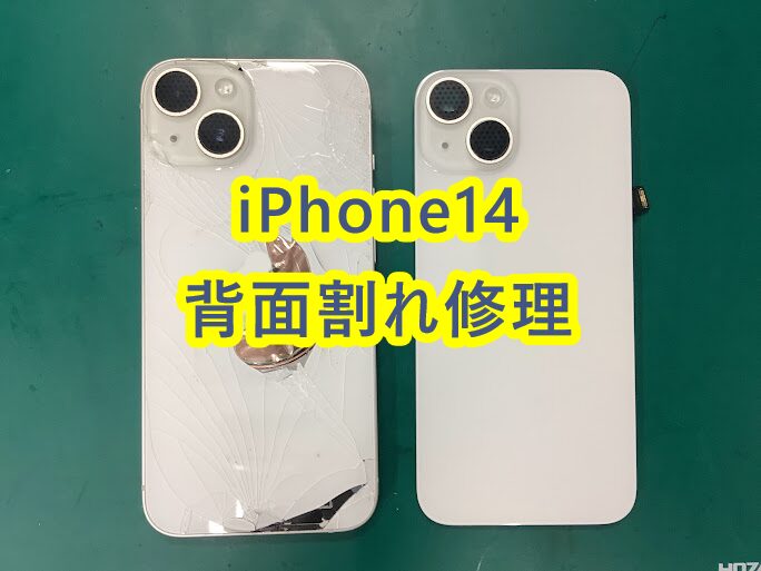 落として背面がバキバキに!!iPhone14(アイフォン14)の背面割れ修理を行いました!