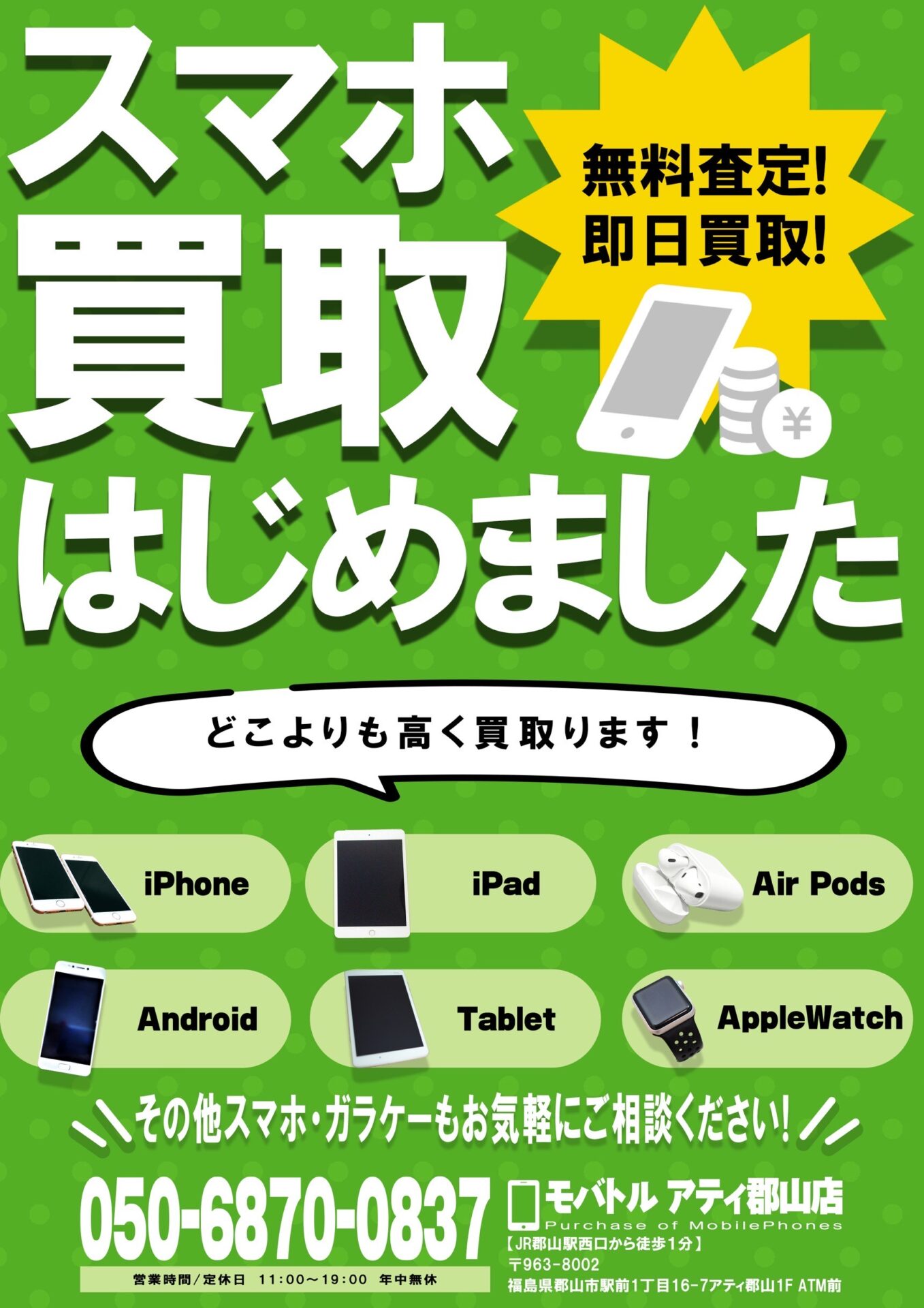 💰当店買い取り始めました!買取のご相談はモバトルアティ郡山へ!💰