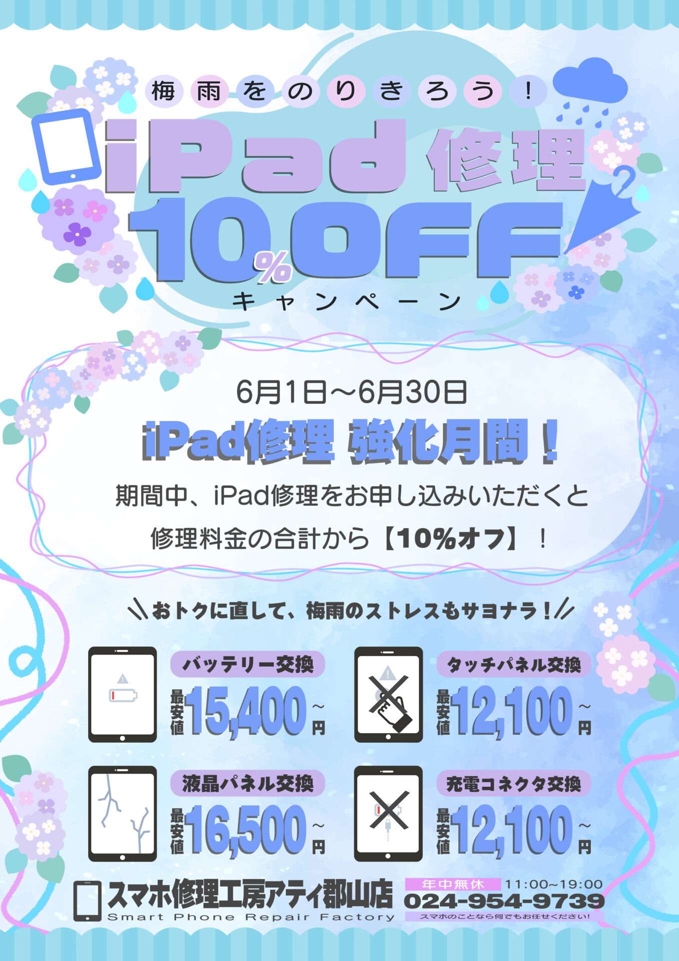 ☂️6月限定☂️ iPad修理10%OFFやってます📱✨