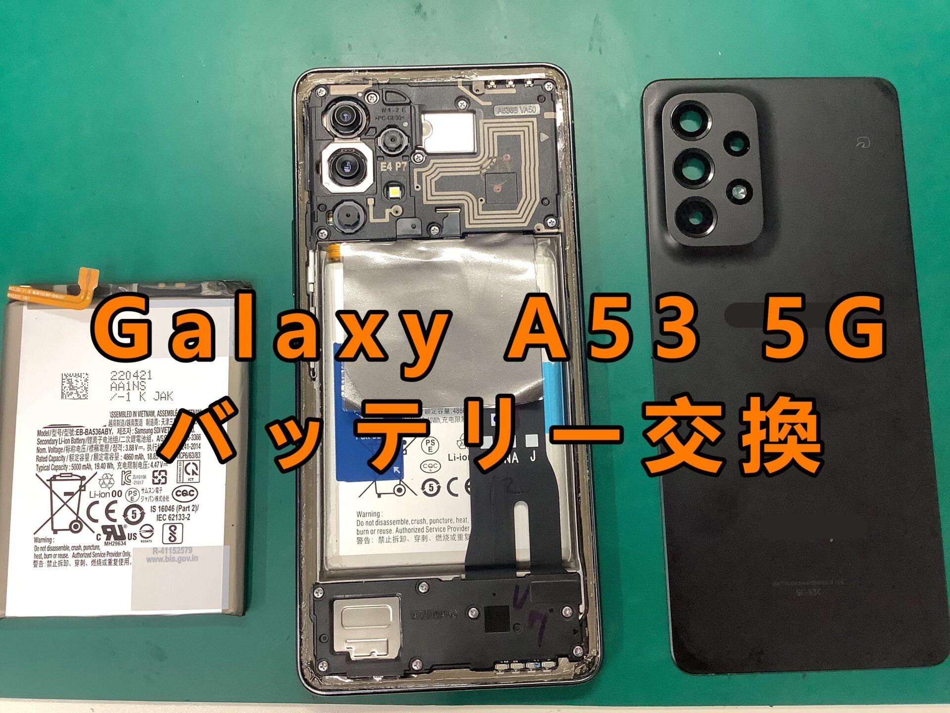 Galaxy(ギャラクシー)の修理もお任せください!Galaxy A53のバッテリー交換を行いました!