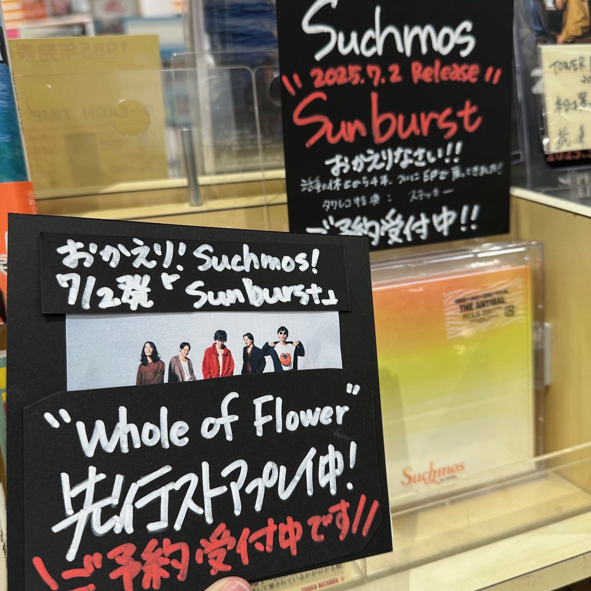 【#Suchmos】 \✨#おかえりSuchmos✨/ 活動休止から4年。 6年ぶりの新作となるEP『#Sunburst』 7月2日発売!! 配信中の新曲「Whole of Flower 」 先行ストアプレイ中✨ 特典🎁ステッカー(TOWER RECORDS ver.) 💫ご予約受付中💫 tower.jp/item/6854509